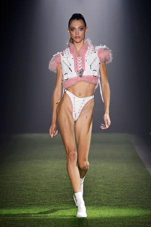 VARSITY DESIRE SPRING 25 se presenta como una (r)evolución de las señas de identidad de la marca, explorando ahora en el mundo deportivo y fusionando las técnicas del upcycling tanto en prendas como en calzado, con la confección artesanal con materiales como el látex y técnicas como el punto tricot.